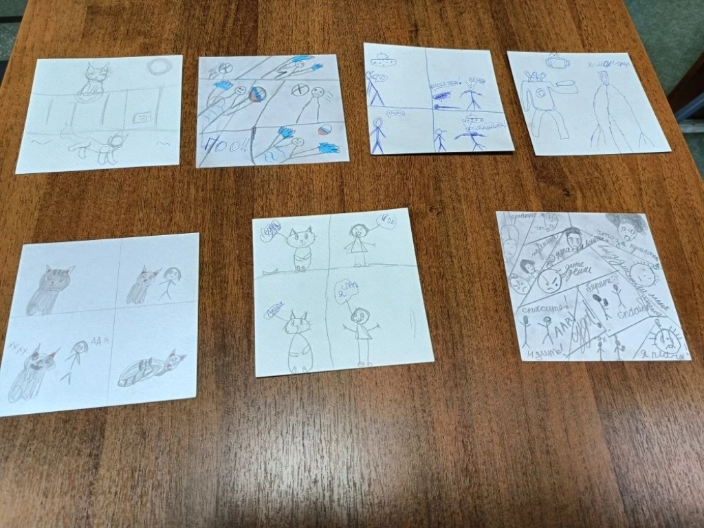 Затем ребята с интересом рисовали комиксы о своих увлечениях и домашних питомцах.