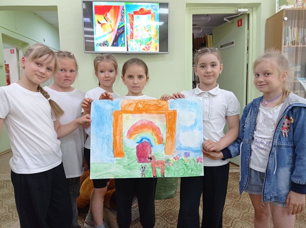 Дети внимательно рассматривали иллюстрации, ведь впереди их ждала творческая работа : как мышонок-художник Терентий рисовал свои радужные картины, так и им предстояло нарисовать свои картины с героями Радия Погодина.