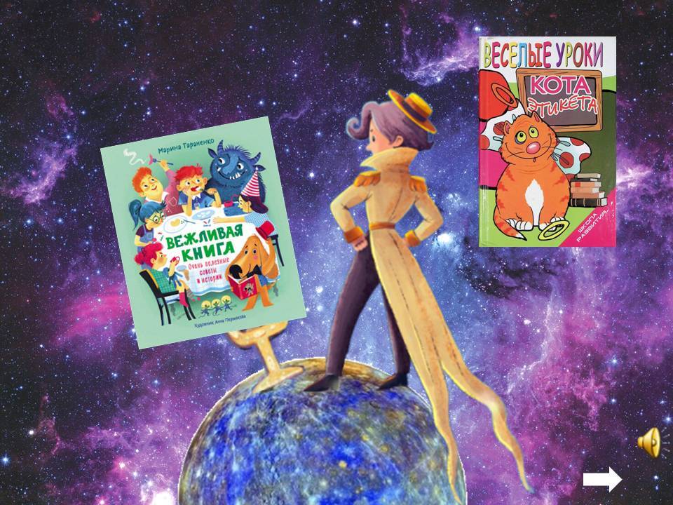 Но ведь надо посмотреть на себя со стороны. Что и было сделано на следующей планете. Их ожидала встреча с Честолюбцем. Все дружно согласились, что он ведет себя не красиво. И ему уж точно будет полезно познакомиться с «Вежливой книгой» и «Веселыми уроками кота Этикета»!