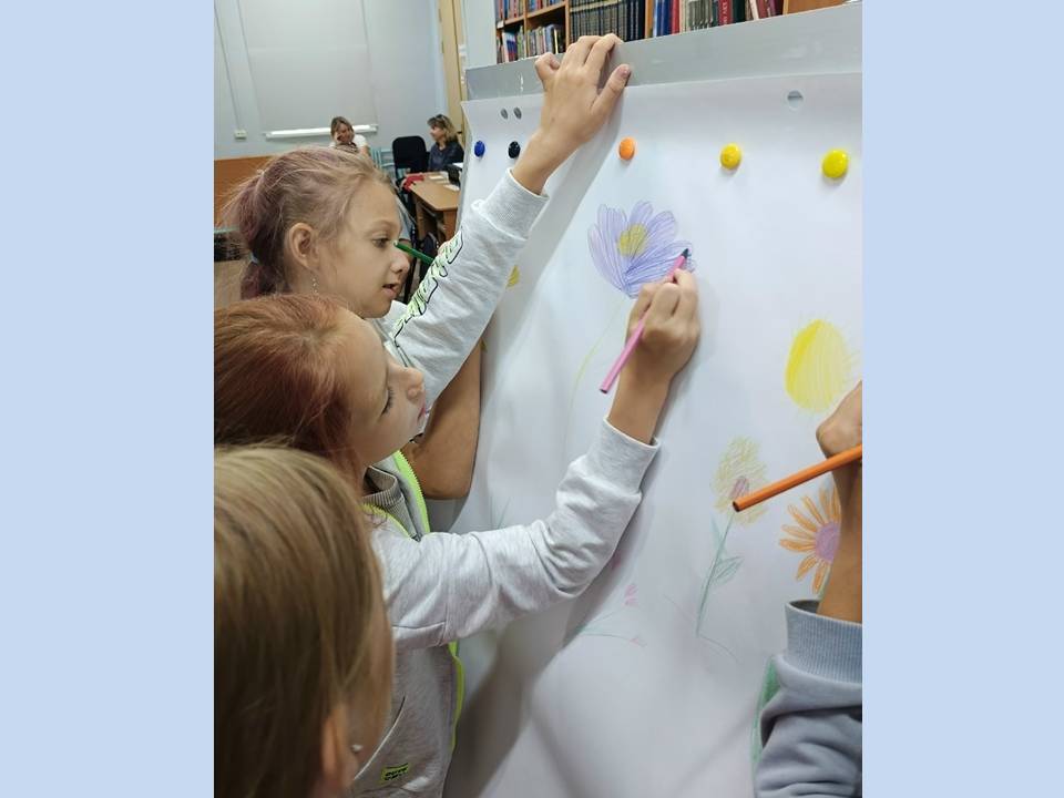 Ребята из 1-го отряда летней досуговой площадки социального центра «Родник» слушали волшебные истории про жеребёнка Мишу и мышонка Терентия, которые придумал писатель Радий Погодин.