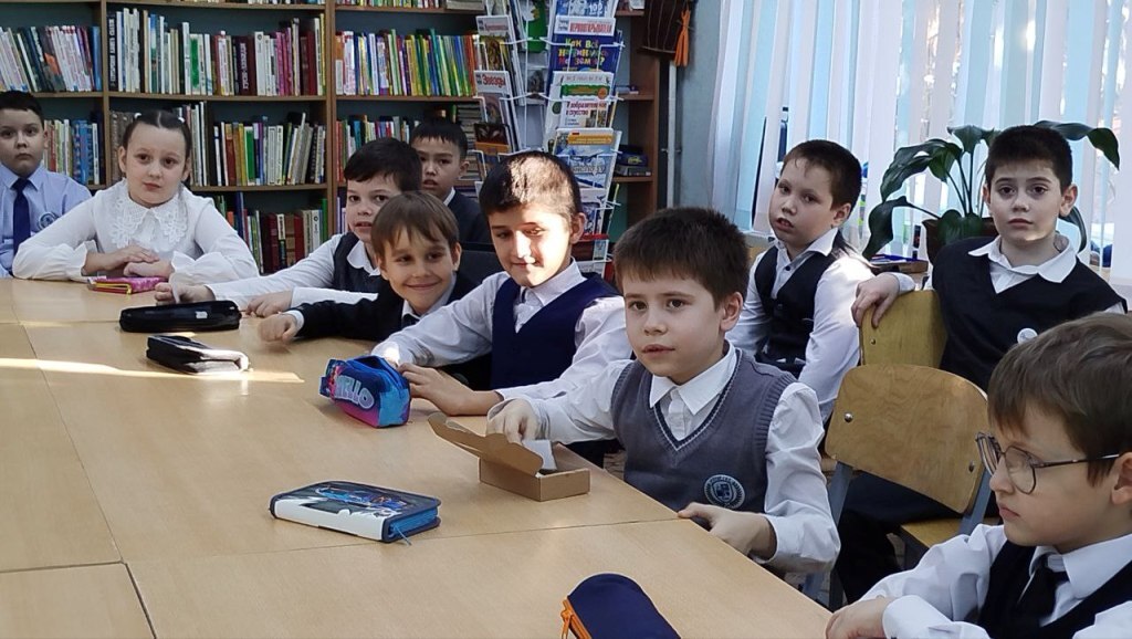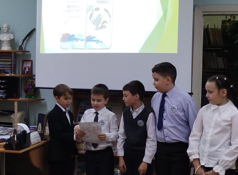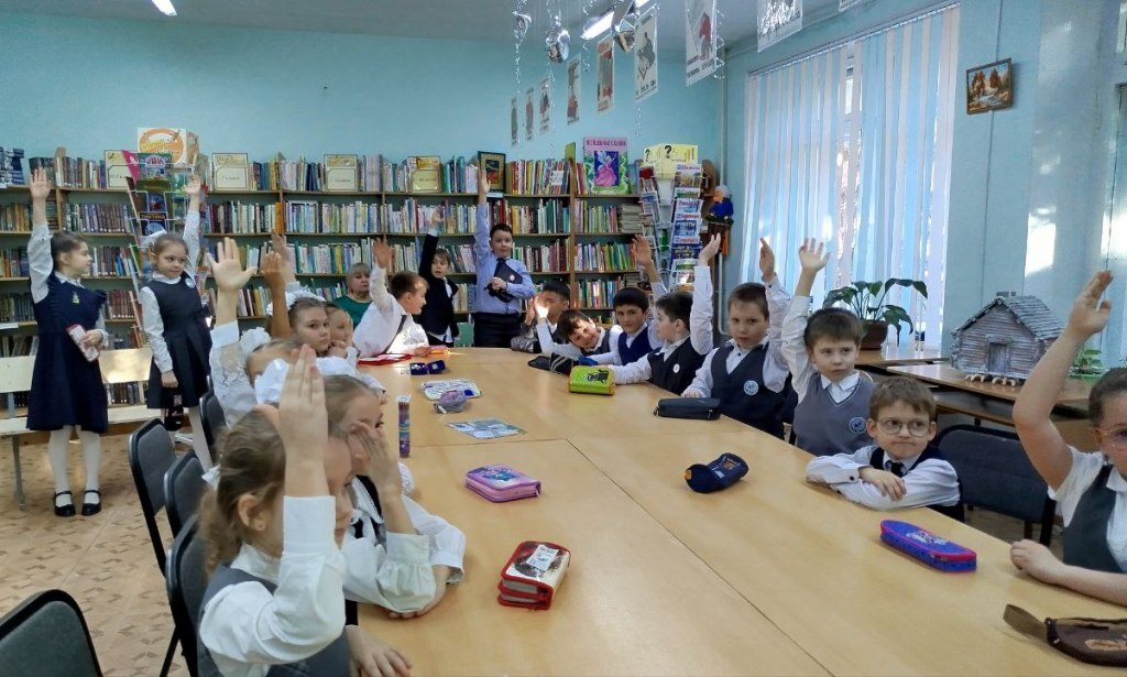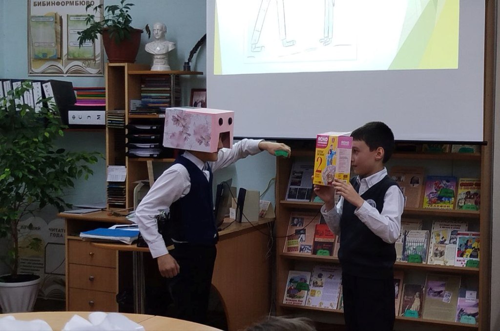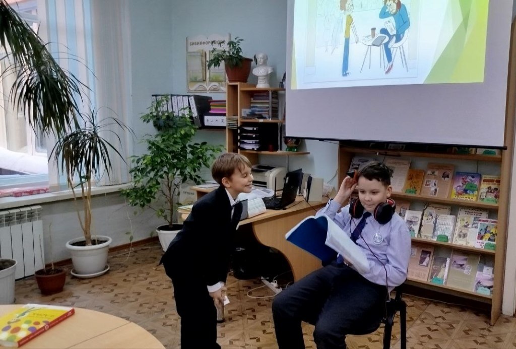 Затем библиотекарь рассказала ребятам о Дане Тихомирове, главном герое книги «Восьмилетний человек», его маме, папе, сестрах Ульяне и Полине, бабушке и таксе Клеопатре.