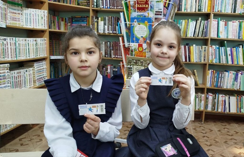Далее ребята совершили виртуальное путешествие на книжную ярмарку, но, чтобы попасть туда, нужно было назвать любимое произведение и взять входной билетик.