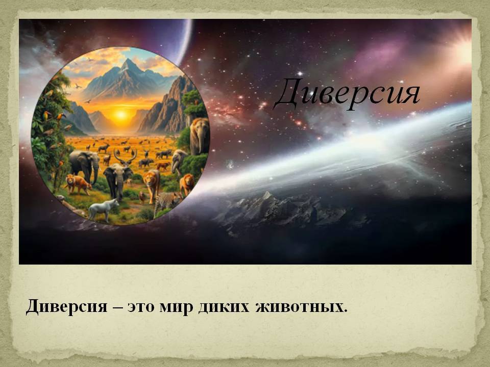 Мир, где царят законы эволюции, а жизнь бурлит в каждой капле воды и каждом клочке земли. На Диверсии нет ни городов, ни построек, ни следов разумной жизни, только первозданная красота и борьба за выживание. Водоемы, населенные рыбами, земноводными и другими водными животными. Моря и океаны, полные жизни, от крошечных водорослей до огромных китов. Разнообразные виды млекопитающих, от небольших грызунов до крупных хищников и травоядных. Яркие, красочные пернатые, населяющие все уголки планеты. Ядовитые змеи, крупные ящерицы, лягушки и другие представители холоднокровных. Разные виды рыб, от пресноводных до морских. Тысячи видов насекомых, от безобидных бабочек до опасных хищников.
