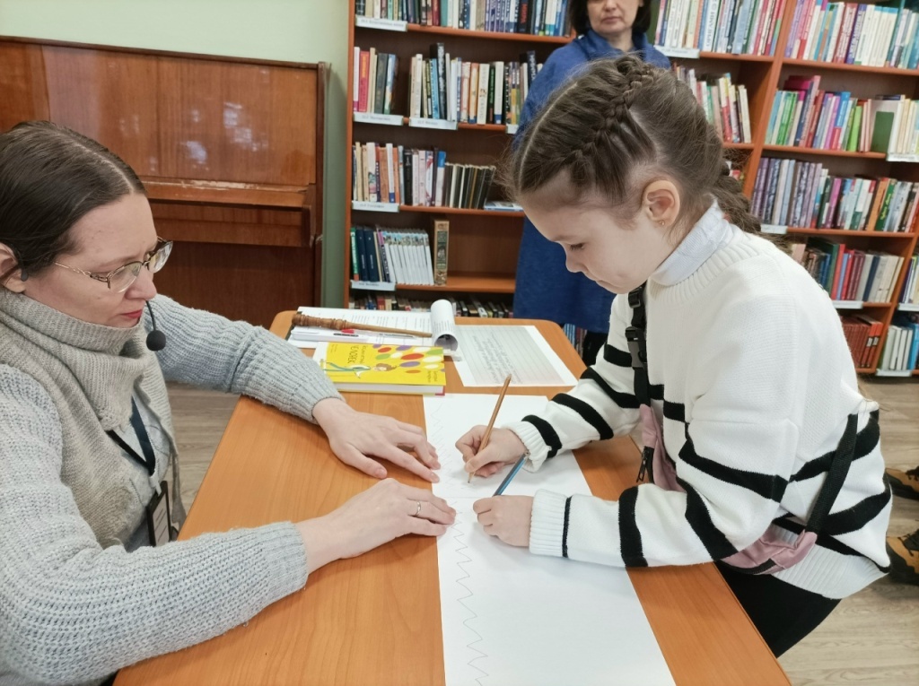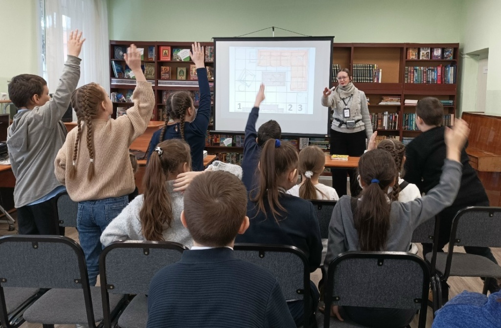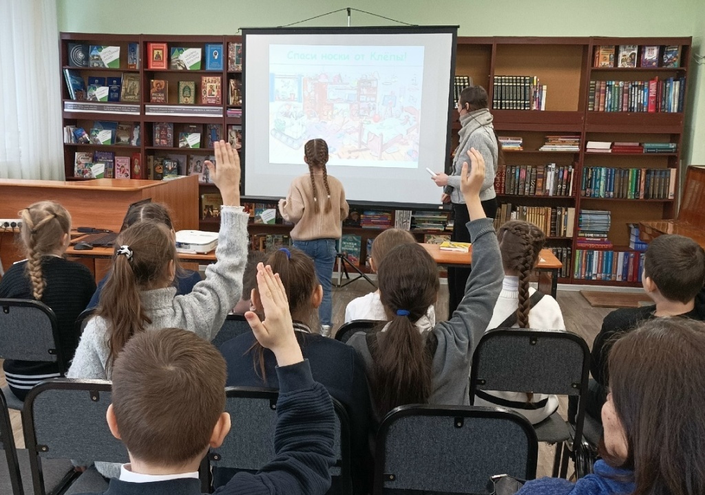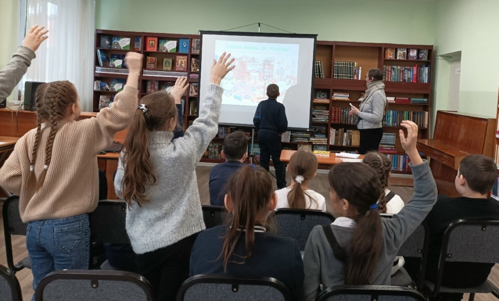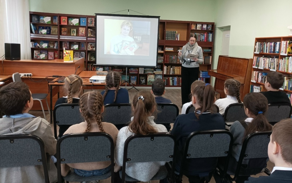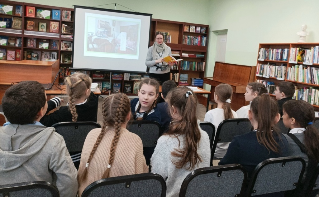 Ведущая Инесь Васильевна Марсавина знакомила с биографией писательницы, трейлером экранизации книги-юбиляра «Календарь ма(й)я» и с письмом к читателям омских муниципальных библиотек. И переходила к знакомству с книгой и её героями. Детям пришлось слушать много отрывков про Даню Тихомирова и его сестёр, но так как они были очень забавными, то слушали с удовольствием и смеялись!
