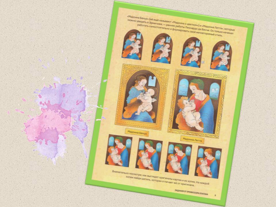 Комикс рисовать дети стеснялись, но искусствоведением занялись: искали отличия в копиях «Мадонны Литта» и «Мадонны Бенуа» Леонардо да Винчи и разминали руки двуручным рисованием.
