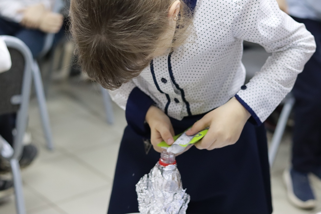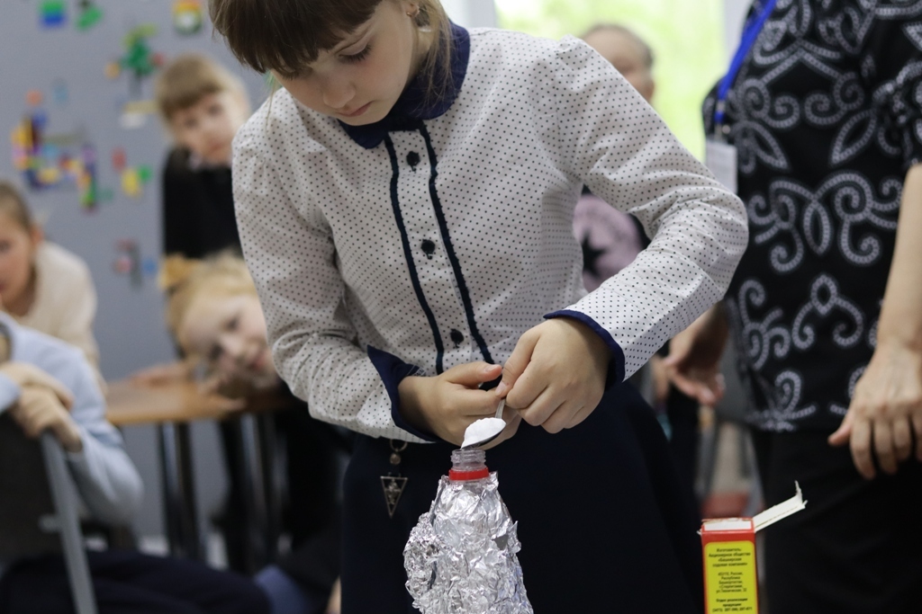 На планете Учёного Географа ребята не только познакомились с книгами об этой науке, но и провели опыт. Устроили самое настоящее извержение вулкана, используя для лавы соду и лимонную кислоту.