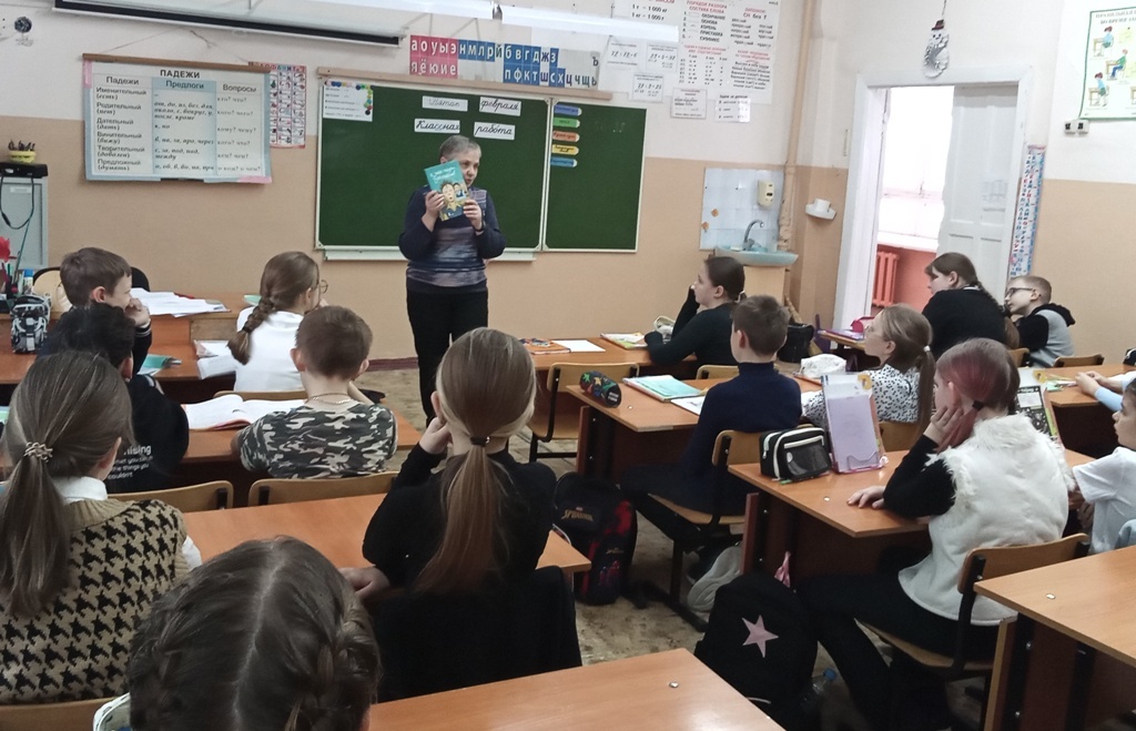 Школьникам кратко рассказали биографию писательницы, показали ее книги.