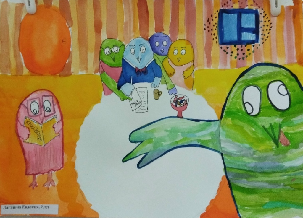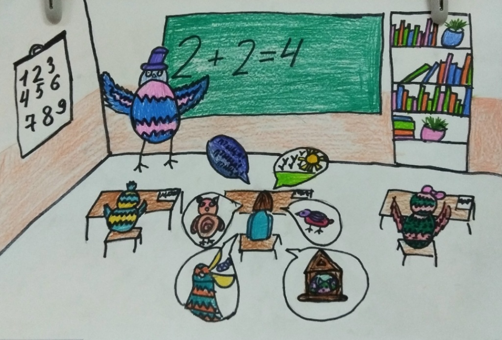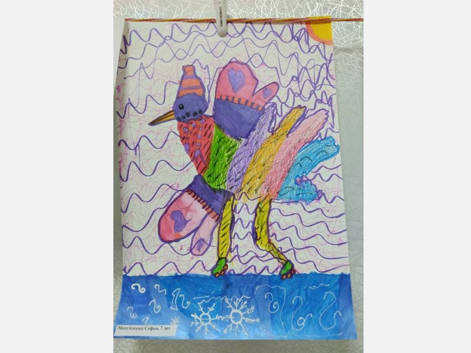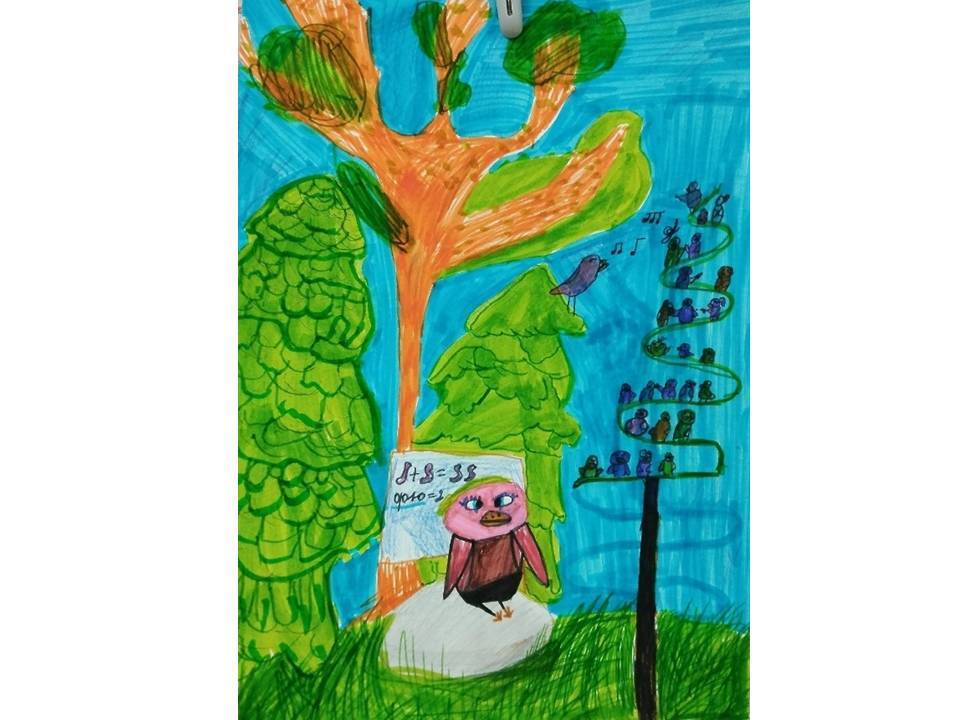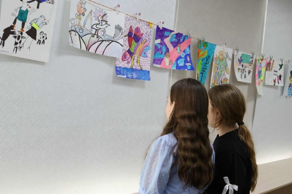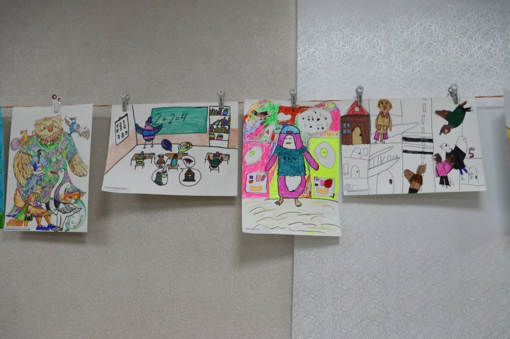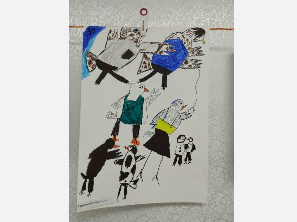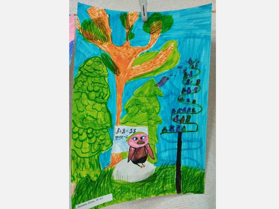Юные художники детской школы искусств № 13, вдохновлённые Аидой, создали целую галерею рисунков в различных техниках. На них они изобразили своё окружение, знакомых и родных в образах птиц и целых птичьих семей.