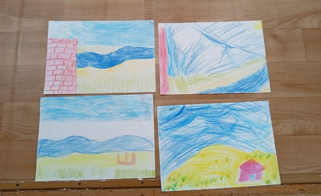 Картины получились замечательные, ребята с радостью представили их и рассказали, что изображено и кто больше всех приложил сил.