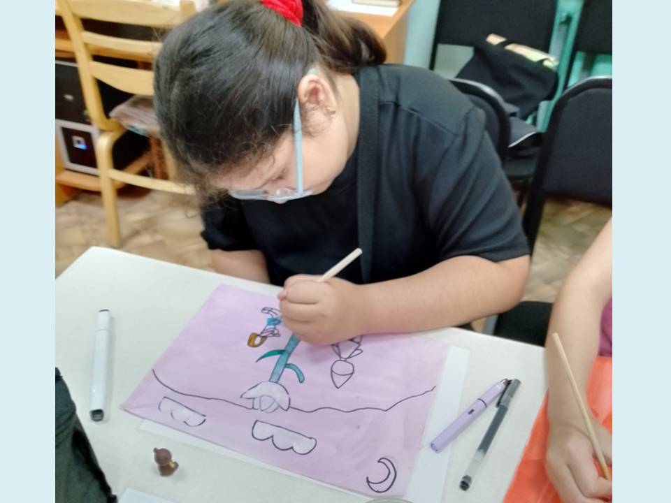 После рассказа о жизни и творчестве автора дети погружались в волшебный мир её сказки «Потерялась девочка». Ведущая читала начало книги, и перед слушателями оживала история маленькой Зои — девочки, которая жила с мамой и тётей и любила рисовать.