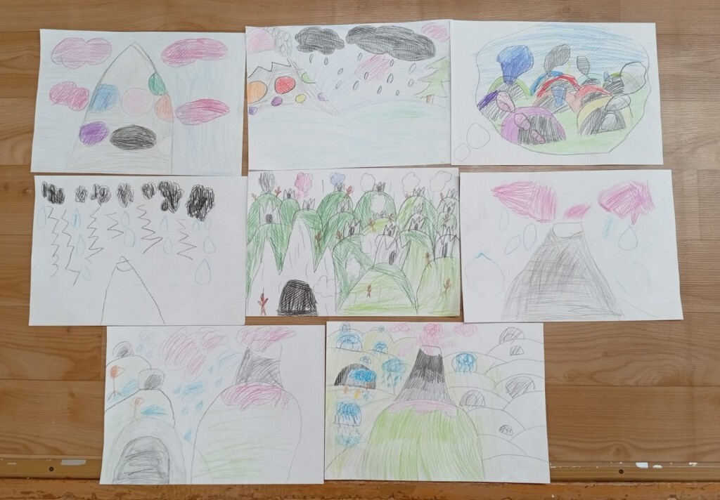 Когда вулканы были нарисованы, а ребята готовы представить свои картины, все погрузились в волшебный мир облаков.