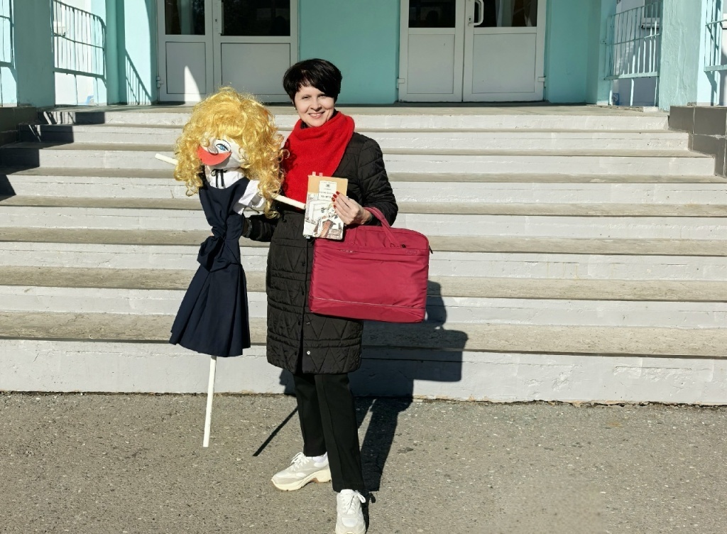 Библиотекарь. Ребята, а теперь знакомьтесь, это новенькая в вашем классе. Теперь она будет учиться с вами…