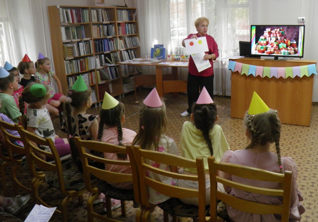 Заведующая библиотекой имени А.И.Герцена Елена Ивановна Басова объясняла: «Для того, чтобы попасть туда, необходимо стать разноцветными!». Ребята надевали разноцветные колпачки, и… путешествие начиналось…