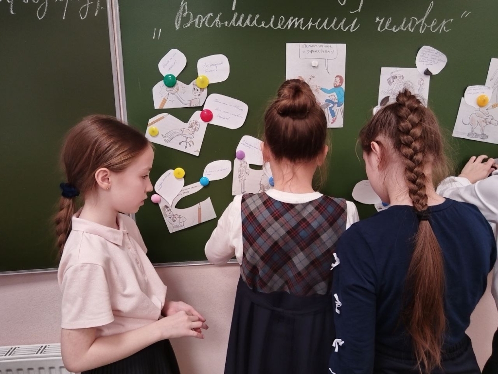 Готовые работы были размещены на доске, рядом с главными героями книги.