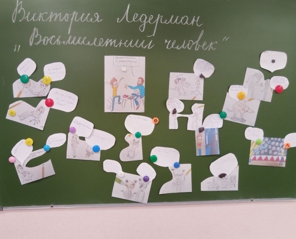 Их задача была – придумать и написать новый текст для комиксов из жизненных ситуаций Дани Тихомирова. Каждая группа превратилась в настоящую студию творчества, где рождались смешные и трогательные сюжеты.