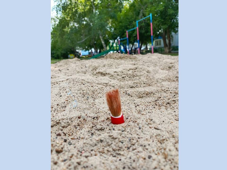 И как только библиотекарь сказал слово «Клад», все быстро побежали его искать. Почему все знали место, где закопан клад? Потому что глупый мышонок Терентий оставил свою красную кисточку в песочном холмике.