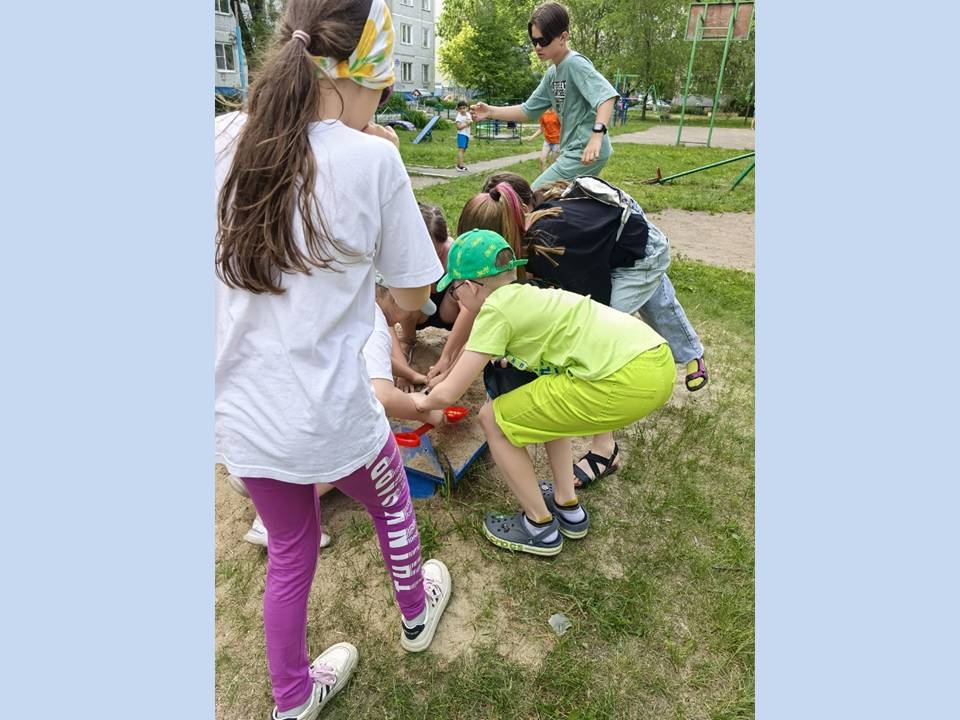 Все участники выдвинулись на детскую площадку за библиотекой.